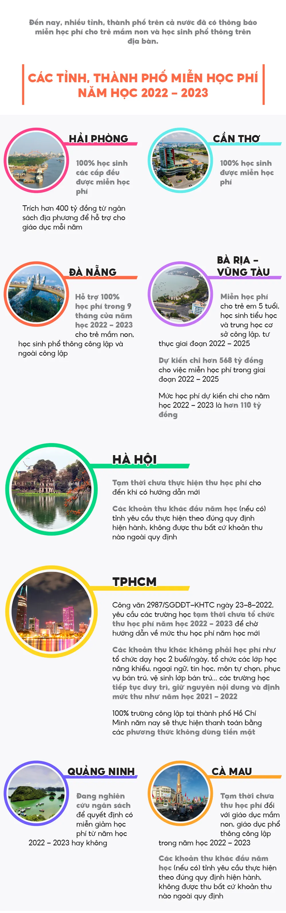 Đến nay, nhiều tỉnh, thành phố trên cả nước đã có thông báo miễn học phí cho trẻ mầm non và học sinh phổ thông trên địa bàn.