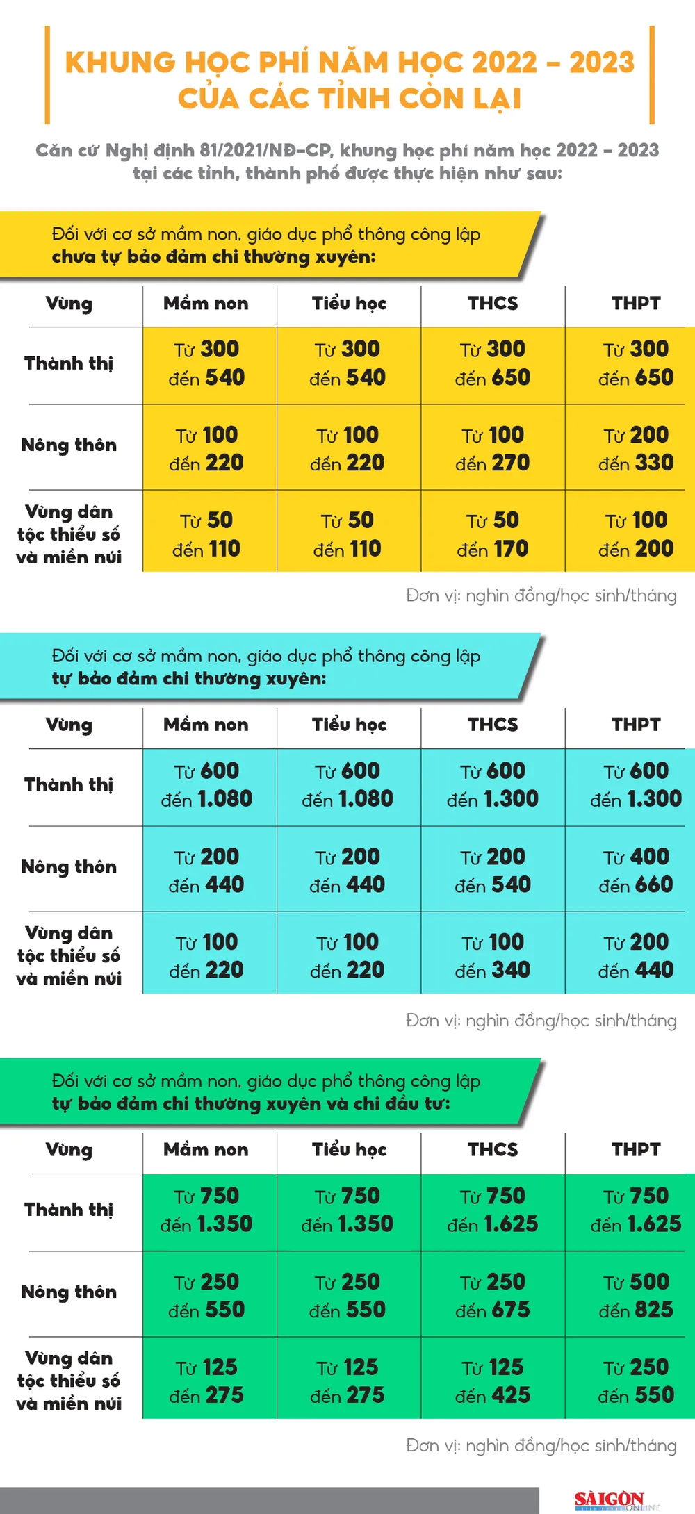 Những tỉnh, thành nào miễn học phí năm học 2022-2023?