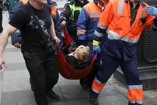 Cấp cứu người bị thương trong vụ nổ ở ga tàu điện ngầm Sennaya Ploshchad, St. Petersburg, Nga, ngày 3-4-2017. Ảnh: REUTERS