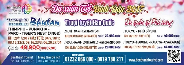 Với dịch vụ chuẩn hóa, chất lượng và giá cạnh tranh, chùm tour Du xuân Tết Đinh Dậu 2017 của BenThanh Tourist đang thu hút đông đảo khách hàng quan tâm và đặt tour.