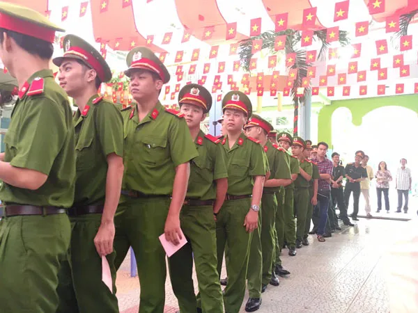Các cán bộ chiến sĩ công an đang chờ lấy phiếu bầu. Ảnh: Quý Ngọc