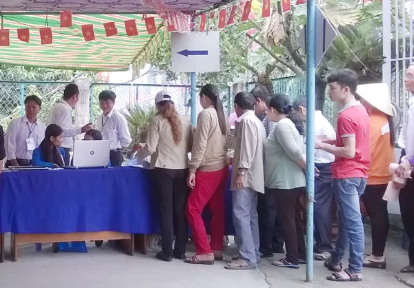 Tại Khu phố 4, phường An Phú Đông, Quận 12 TPHCM đa số bà con cử tri là nông dân đã xếp lại công việc đồng áng đi bầu rất sớm. Ảnh: Mai Quân