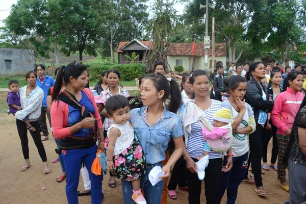 Đồng bào làng Stơr, xã Tơ Tung, huyện Kbang, tỉnh Gia Lai, quê hương của anh hùng Đinh Núp địu cả con đến các điểm bầu cử. Ảnh: Võ Phúc