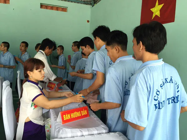 Học viên tại Cơ sở Xã hội Bình Triệu TPHCM thực hiện quyền công dân. Ảnh: Thái Phương