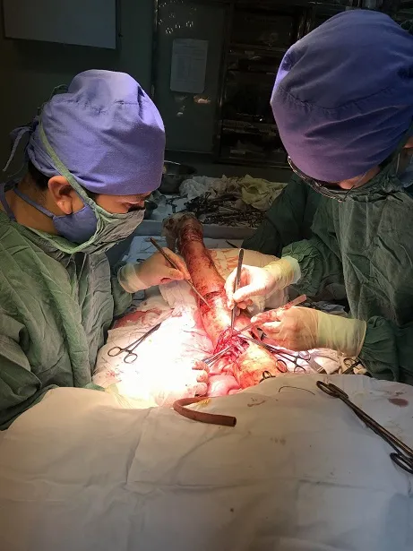 Ngay lập tức, êkíp hội chẩn liên khoa được huy động. Sau khi hội chẩn, bệnh nhân N. được chuyển lên Khoa gây mê hồi sức. Ca mổ lập tức được thực hiện, kéo dài hơn 3 tiếng đồng hồ ngay trong đêm với sự phối hợp xử lý đồng bộ của các bác sĩ chuyên khoa Chấn thương - Chỉnh hình, Ngoại tim mạch - Lồng ngực và Gây mê hồi sức.