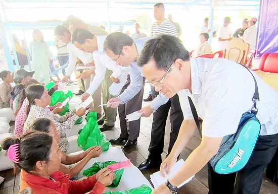 Chuyện đói khát của bà con kiều bào ở Kompong Chhnang cũng đã lan đến với người dân TPHCM và nhiều doanh nghiệp, nhà hảo tâm. Ủy ban Về người Việt Nam ở nước ngoài của TPHCM đã sang tận nơi thăm và tặng quà cho bà con. Tổng giá trị quà và tiền khoảng 1,325 tỷ đồng. Mỗi phần quà có 30kg gạo, một hộp sữa bột và 500.000 đồng. Việc mua gạo, sữa và vận chuyển đến nơi tặng quà trên vùng sông nước quả là bận rộn và có phần vất vả. “Tại sao không tặng tiền cho gọn nhẹ”, có người hỏi ban tổ chức. “Không được. Nếu tặng tiền không thôi, nhiều người sẽ đem… nhậu hết. Con cái họ sẽ vẫn đói, khát”, một người trong Tổng hội Người Campuchia gốc Việt tại Campuchia vui vẻ giải thích. Hàng trăm người già, trẻ, gái, trai, mỗi người đại diện cho một gia đình, ngồi xếp hàng trên chiếc bè của nhà sinh hoạt cộng đồng để ban tổ chức lần lượt trao tận tay quà tặng và tiền cho bà con. Do khâu tổ chức tốt, lực lượng tình nguyện tận tụy, nhanh nhẹn và một phần do bà con rất tự giác nên buổi phát quà kết thúc ngoài mong đợi của những người chủ trì.