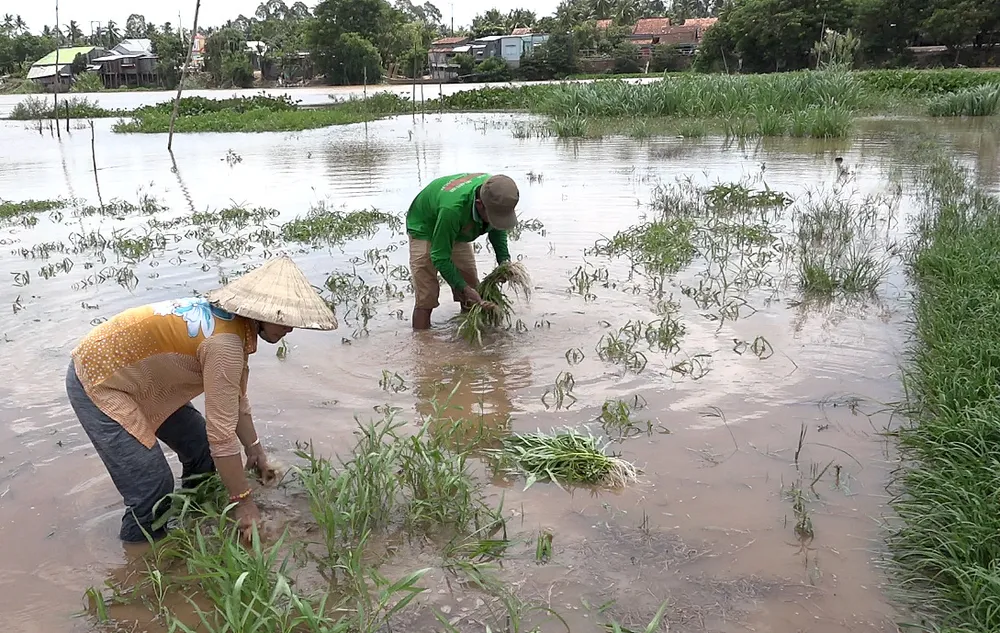 Riêng một số diện tích trồng ở gò cao còn lại người dân túc trực canh mực nước, nếu nước tiếp tục dâng cao thì cũng sẽ thu hoạch sớm.