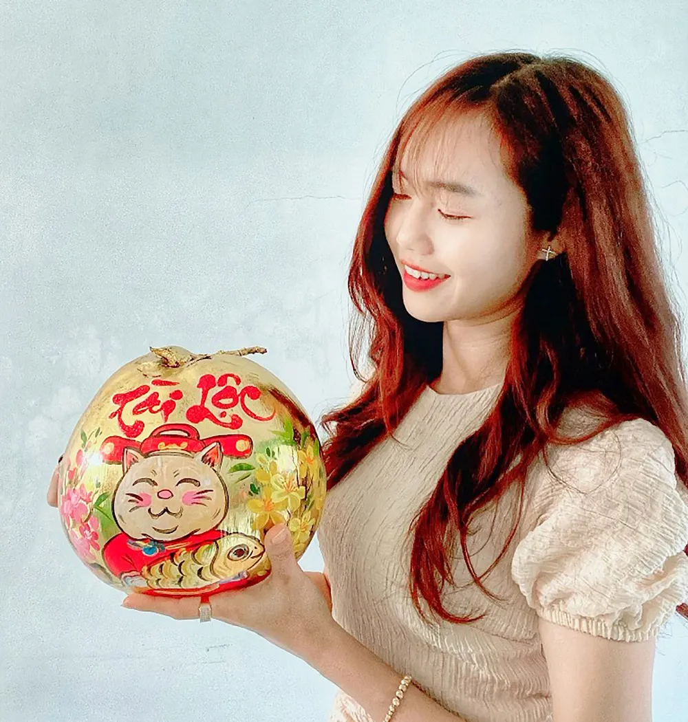 Tại Vĩnh Long, gần 200 cặp dừa vẽ linh vật mèo của nữ giáo viên Huỳnh Ngọc Quyến (30 tuổi, ngụ huyện Trà Ôn, tỉnh Vĩnh Long - ảnh) đến thời điểm này đã cháy hàng. Nữ giáo viên cho biết, giá mỗi cặp dừa vẽ linh vật mèo có giá trên dưới 200.000 đồng, dù còn nhiều khách hàng đặt vẽ nhưng hiện không kịp thời gian để hoàn thành tác phẩm.