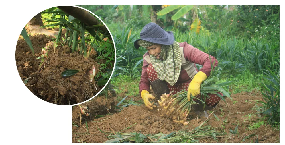 Nông dân Quảng Ngãi phấn khởi thu hoạch gừng Tết