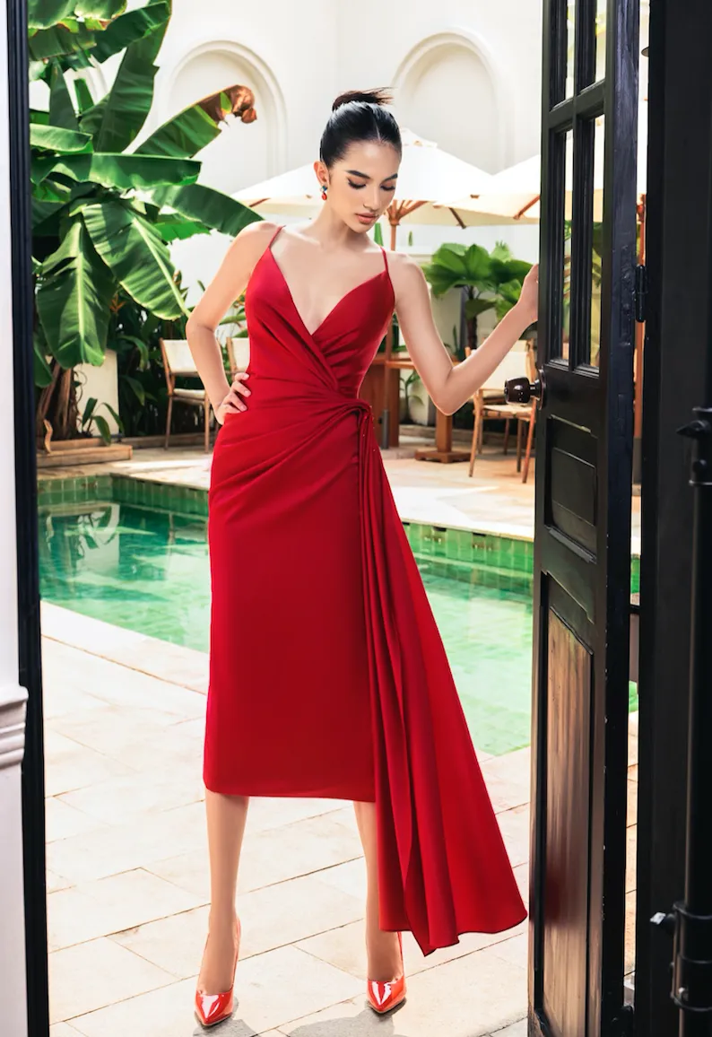 Thay vì cắt xẻ táo bạo hay đính kết cầu kỳ, loạt thiết kế lần này tập trung khai thác độ rũ mềm mại và sáng bóng tự nhiên của chất liệu satin cao cấp. Đỗ Long chia sẻ, mình luôn muốn định nghĩa sự quyến rũ trong thời trang bằng nhiều cách khác nhau. Với BST “Find Me in You", nét đẹp nữ tính, gợi cảm được thể hiện bằng những đường nét tinh tế, những chi tiết cắt xẻ đều được tính toán hợp lý để khoe vừa đủ đường cong cơ thể một cách khéo léo.