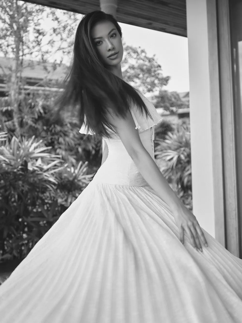 Diện váy áo tha thướt, nàng hậu khoe vẻ đẹp nữ tính, ngọt ngào. Các thiết kế cut out, chiết eo hay khoe vai trần tinh tế giúp tôn lên sắc vóc.