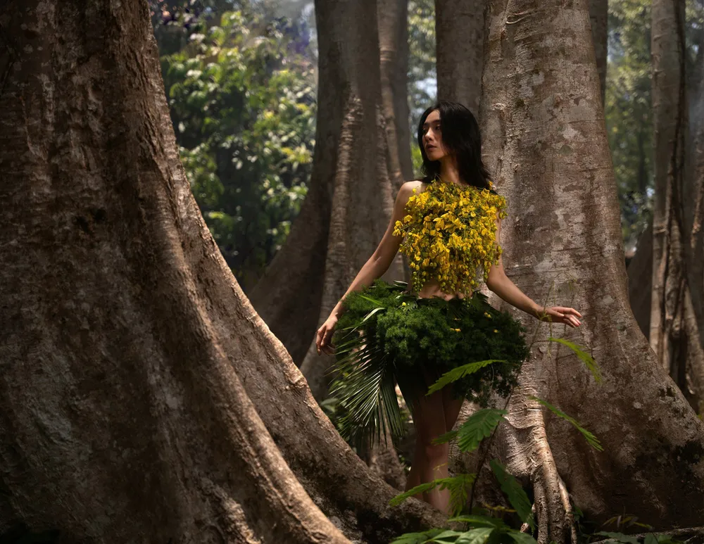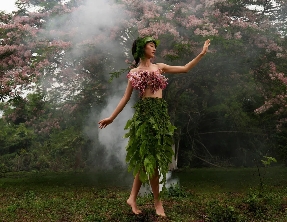 * NTK Minh Hạnh thiết kế váy bằng hoa lá từ Vườn Quốc gia Cát Tiên