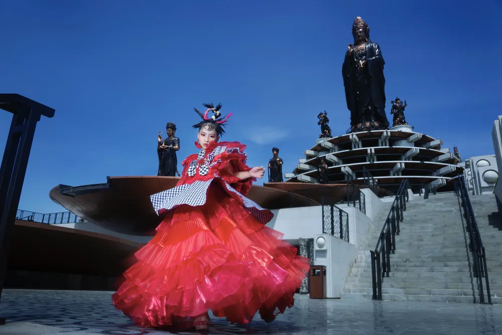 Điểm nhấn của BST Điệu Nam bộ là với chiếc váy ấn tượng dài 20m do mẫu nhí Kiều Hân thể hiện. Thiết kế được vẽ tay thủ công, khắc họa những địa danh nổi tiếng của Tây Ninh như 6 ngôi chùa thờ Linh Sơn Thánh Mẫu, hệ thống hang động và quần thể tâm linh trên đỉnh núi Bà Đen…