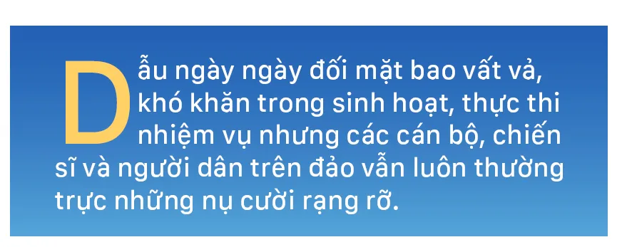 Dẫu ngày ngày đối mặt bao vất vả, khó khăn trong sinh hoạt, thực thi nhiệm vụ nhưng các cán bộ, chiến sĩ và người dân trên đảo vẫn luôn thường trực những nụ cười rạng rỡ.