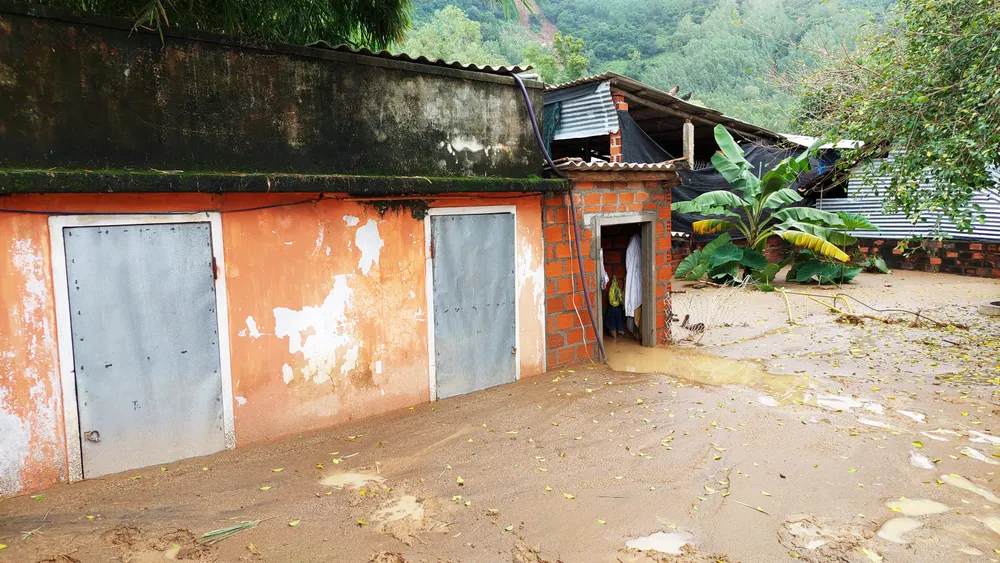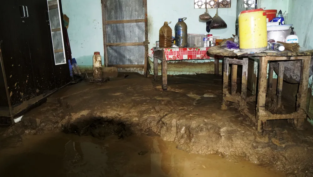 Nhà dân thôn Chánh Thắng bị bùn đất vùi lấp cả mét