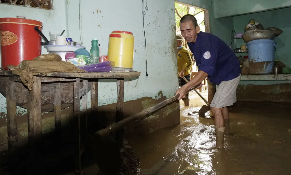 Theo ghi nhận của chúng tôi, do khối lượng bùn đất tràn vào nhà dân rất lớn, có ngôi nhà cao 4 mét bị bùn phủ lấp từ 1 đến 1,5m, đồ đạc, thóc lúa, gà vịt... bị vùi lấp.