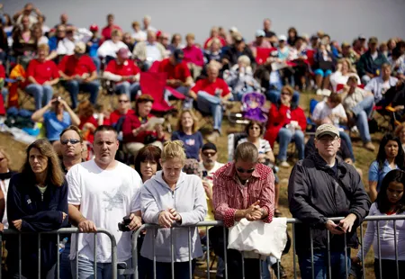 Từ trái qua phải: Bộ trưởng Nội vụ Ken Salazar, cựu Tổng thống Mỹ George W.Bush, cựu đệ nhất phu nhân Laura Bush, cựu Tổng thống Mỹ Bill Clinton, vợ chồng Phó tổng thống Mỹ Joe Biden cầu nguyện trong lễ tưởng niệm những nạn nhân của vụ khủng bố ngày 11-9-2001 tại Shanksville, Pennsylvania.