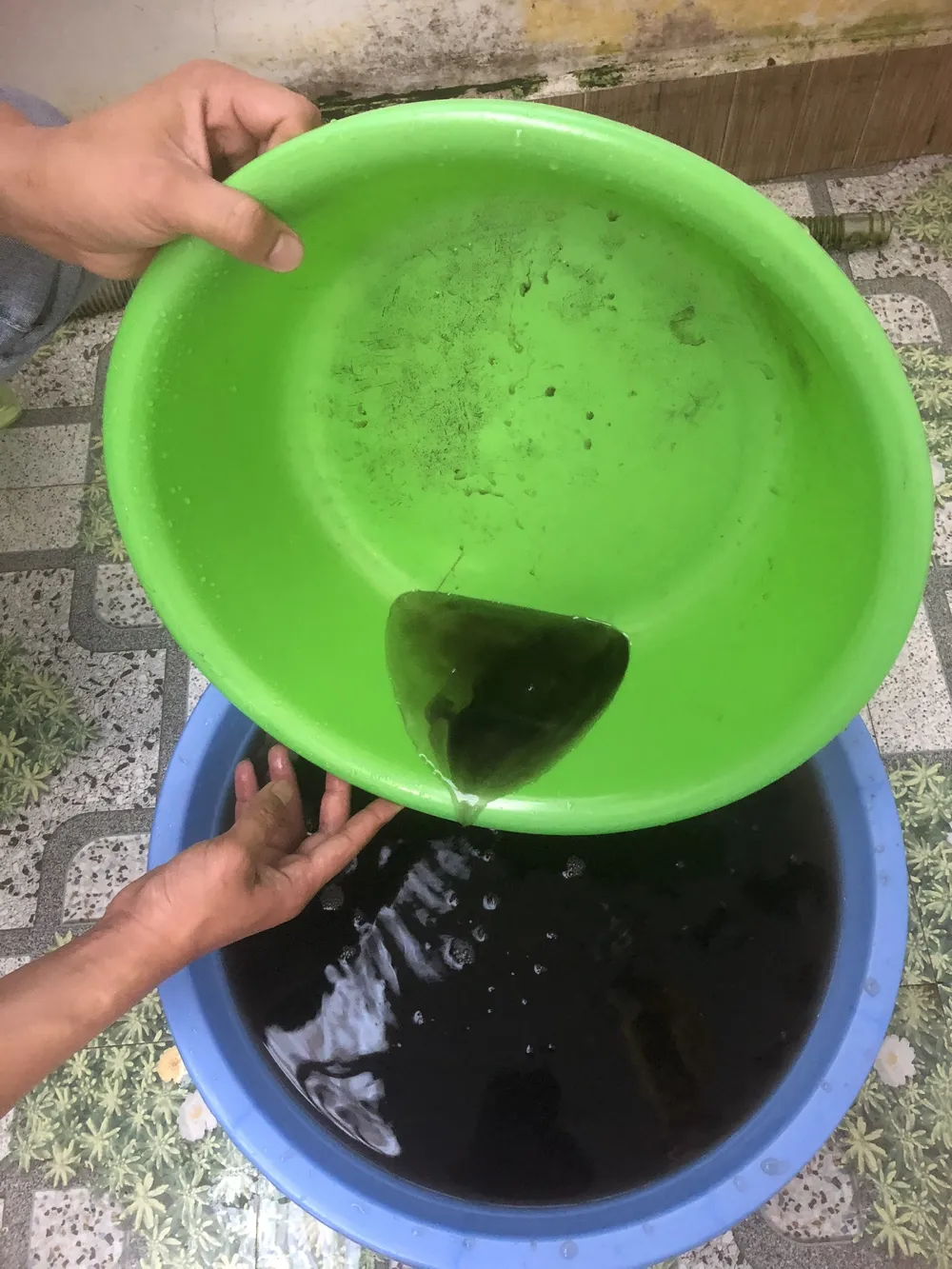Nước được xả từ hệ thống cấp nước sinh hoạt có màu đen, mùi tanh |