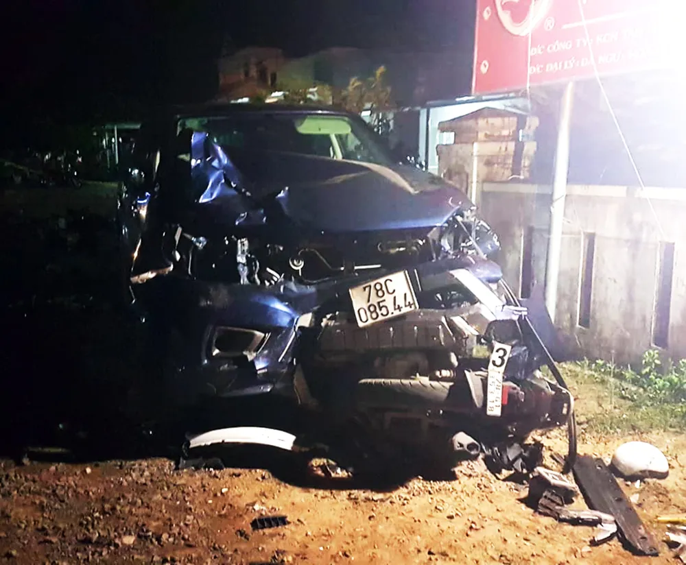 Tại hiện trường, xe mô tô BKS 78G1-353.18 bị cuốn vào gầm ô tô bán tải BKS 78C-085.44, xe biến dạng phần đầu. Bên cạnh đó, xe mô tô BKS 78M1-0830 bị tông văng nên hư hỏng nặng, nằm cách lề đường hơn 5m; xe đạp điện bị cán gãy nát.