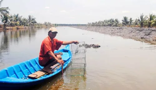 Mô hình tôm - lúa ở Cà Mau thất bát vì hạn, mặn gay gắt. Ảnh: NGỌC CHÁNH