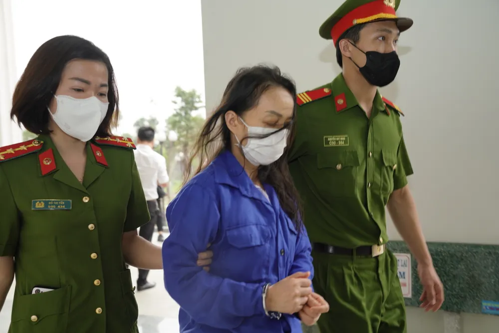 | Bà Hoàng Thị Ngọc Hưởng, nguyên Phó Giám đốc Bệnh viện Tim Hà Nội được áp giải tới tòa. Ảnh: ĐỖ TRUNG |