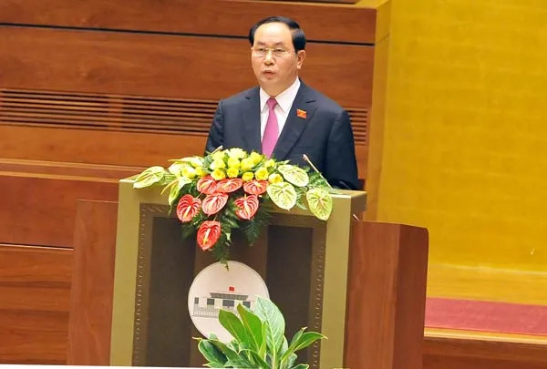 Phát biểu sau khi tuyên thệ, Chủ tịch nước Trần Đại Quang trân trọng cảm ơn Quốc hội đã tín nhiệm bầu ông giữ chức vụ Chủ tịch nước.