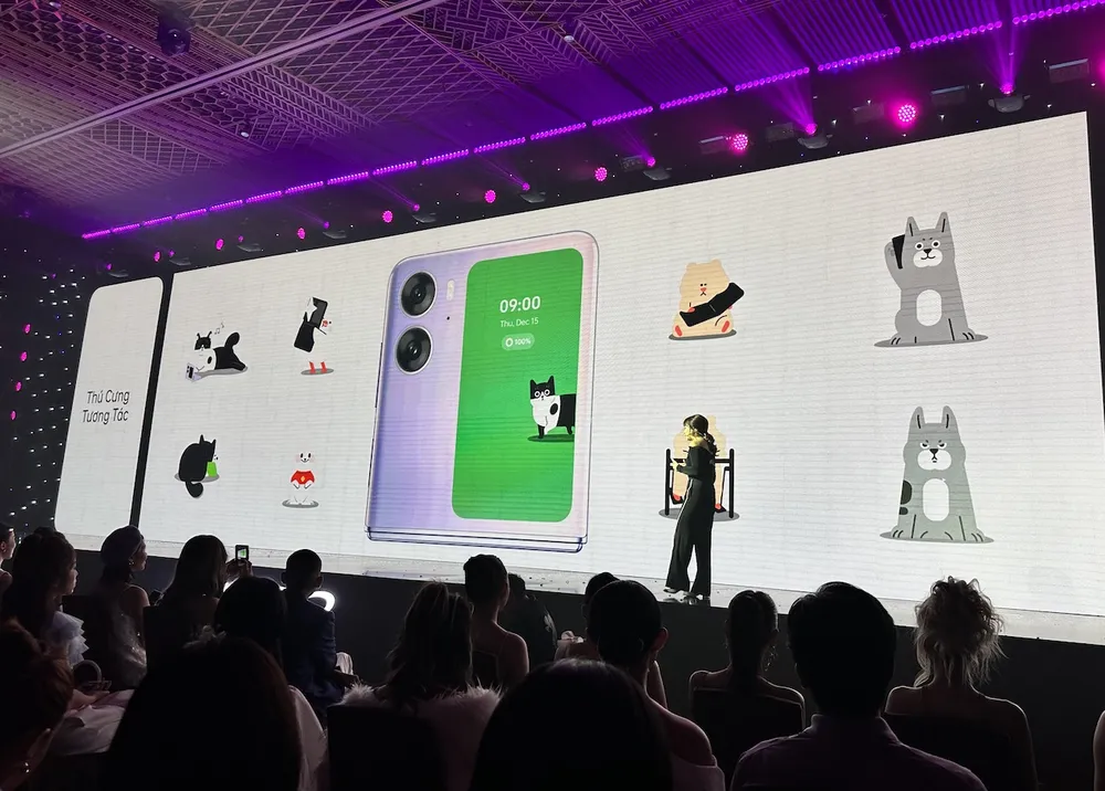 Ngoài những tiện ích thực tế, màn hình ngoài còn tích hợp các tuỳ chọn hình nền thú vị, chẳng hạn như tính năng Tương tác với năm thú cưng, bao gồm mèo, chim, cún, chuột, thỏ. Ngoài ra, người dùng có thể cài đặt tệp GIF làm hình nền sinh động, hoặc sử dụng gói nhãn dán nhân vật trong ứng dụng Bitmoji làm màn hình chờ AOD. Ngoài nhãn dán Bitmoji và OMOJI, màn hình chờ AOD còn hiển thị một số thông tin hữu ích như thời gian, trạng thái nguồn và thông báo.