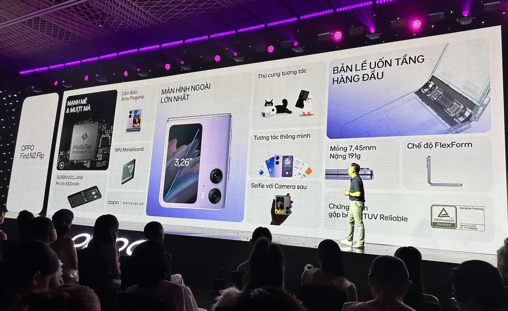 Ngoài ra, người dùng cũng không phải lo lắng về dung lượng lưu trữ với Find N2 Flip. Tại thị trường Việt Nam, sản phẩm sẽ hỗ trợ 8GB RAM + 256GB ROM, giúp người dùng thoải mái lưu giữ mọi khoảnh khắc, dù là ảnh chụp hay video chất lượng lên đến 4K.