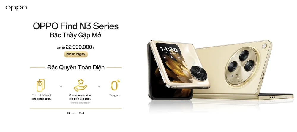 Về sản phẩm, bộ đôi Find N3 và Find N3 Flip là những thiết bị đột phá về công nghệ, được thiết kế “may đo” theo nhu cầu và kỳ vọng của người dùng. Máy có thiết kế hiện đại giao thoa thời trang; camera chất lượng; khả năng đa nhiệm nhờ hiệu năng khoẻ cùng ứng dụng được tối ưu, hỗ trợ người dùng làm việc - giải trí bất cứ khi nào, thúc đẩy lối sống hiệu năng và cân bằng. Bộ đôi là minh chứng cho sự thấu hiểu, đồng hành, như lời cảm ơn của OPPO dành cho người dùng yêu mến và lựa chọn hãng.