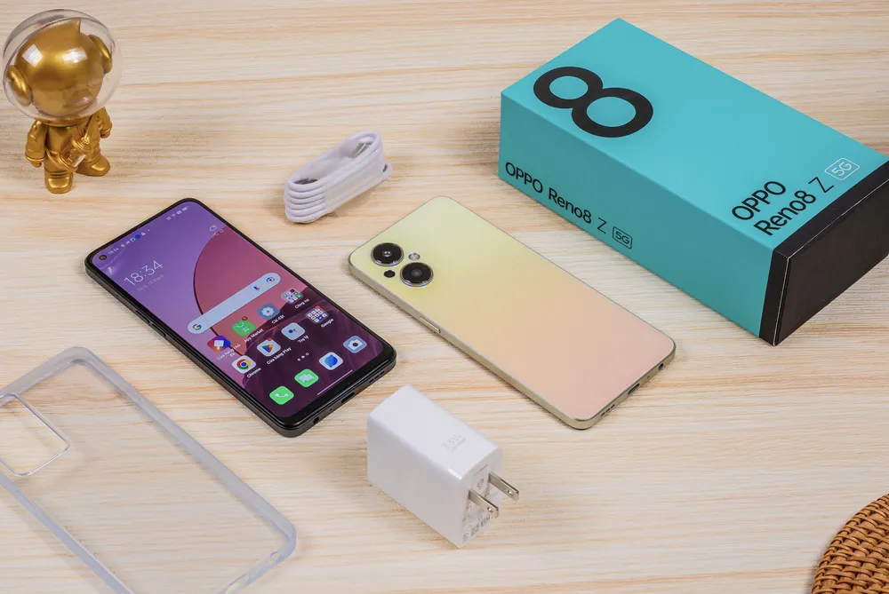 Một điểm nhấn thiết kế khác trên Reno8 Z 5G nằm ở phần cụm camera, với Viền sáng kép được tích hợp bên dưới mô-đun camera kép, đóng vai trò là đèn hiển thị thông báo ở mặt lưng. Ngoài ra, thiết kế đã loại bỏ hoàn toàn phần đế camera dày, tạo sự thanh thoát, gọn nhẹ và tinh tế cho điện thoại. Ở mặt trước, màn hình AMOLED 6,4 inch với tốc độ làm mới 60Hz với chứng nhận Màn hình bảo vệ mắt SGS mang đến khả năng hiển thị đồ họa mượt mà, đồng thời.