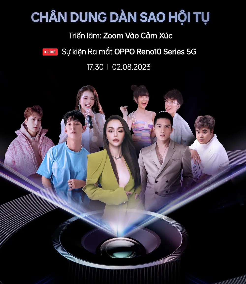 Theo đó OPPO Reno10 Series 5G sẽ chính thức ra mắt vào ngày 2-8-2023 tại TPHCM, hơn 20 gương mặt KOLs như Anh Tú, Song Luân, MLee… cùng nhiều khách mời khác sẽ "cháy" hết mình tại sự kiện ra mắt sản phẩm này, được gọi là ra mắt chuyên gia chân dung thế hệ thứ 10 với chủ đề Zoom vào cảm xúc.