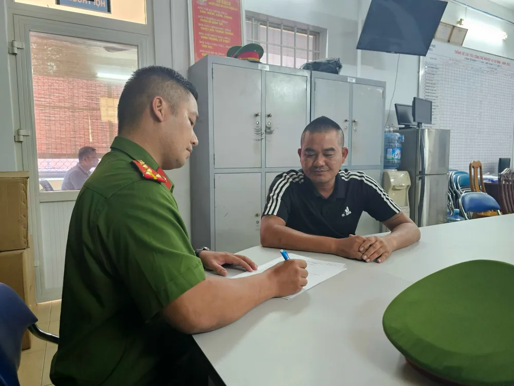 Công an lấy lời khai các đối tượng |