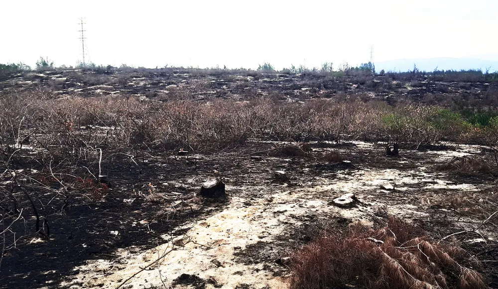 Đặc biệt, chỉ mỗi diện tích rừng cây lâu năm được tỉnh Bình Định giao cho Công ty CP Phong điện Phương Mai là bị phá sạch, đốt sạch. Ảnh: NGỌC OAI