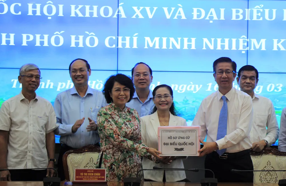 Ủy ban bầu cử TPHCM bàn giao hồ sơ ứng cử ĐBQH và Đại biểu HĐND TPHCM cho Ủy ban MTTQ Việt Nam TPHCM. Ảnh: HOÀNG VŨ