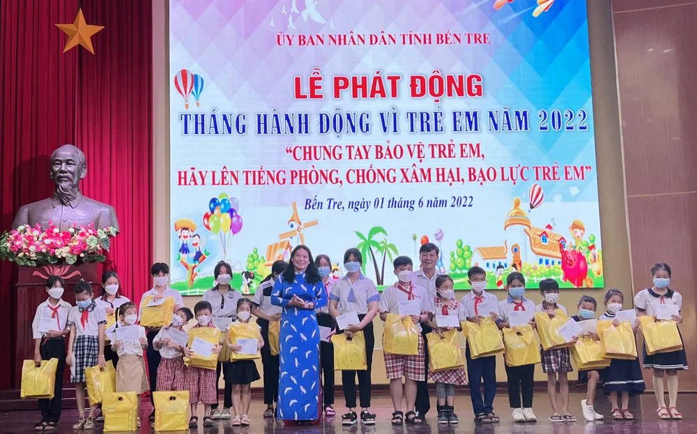 Tại buổi lễ, đại diện lãnh đạo tỉnh Bến Tre đã trao 100 phần quà (mỗi phần trị giá 1 triệu đồng) cho 100 em có hoàn cảnh đặc biệt khó khăn trên địa bàn.
