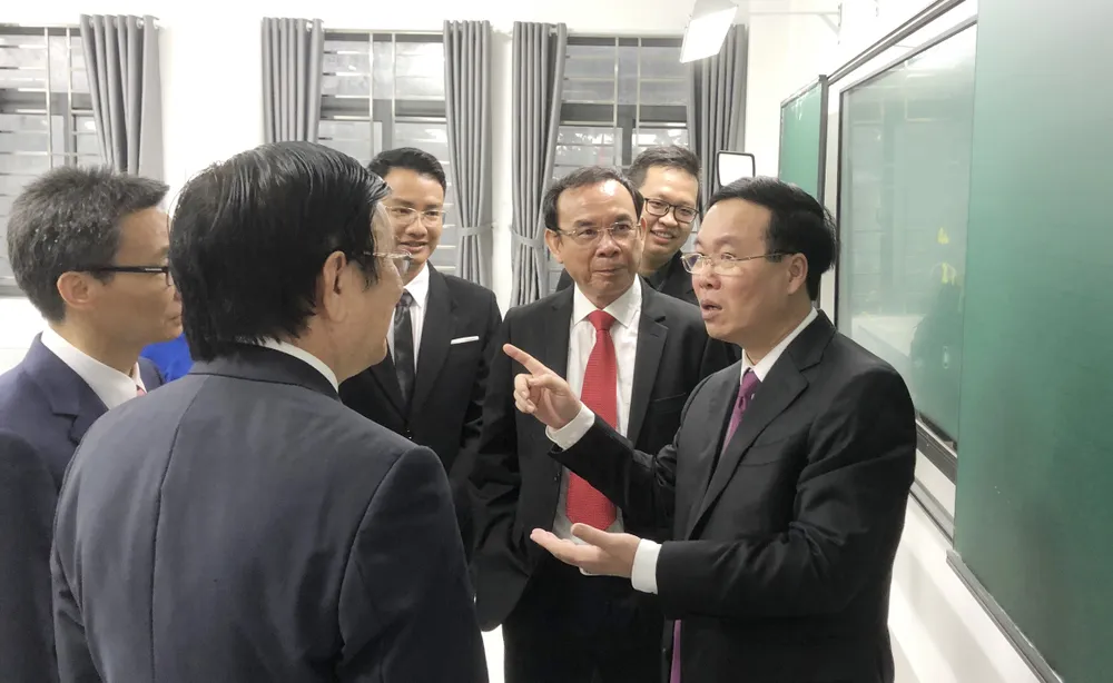 Bí thư Thành ủy TPHCM Nguyễn Văn Nên tham quan và chụp ảnh lưu niệm khi tham quan Nhà trưng bày "vườn ông Sáu Dân"