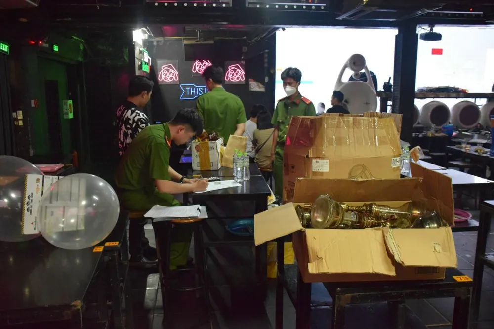 Trước đó, tháng 4-2023, Công an TPHCM đã đột kích nhiều quán bia club ở phố đi bộ Bùi Viện. Qua kiểm tra, công an phát hiện nhiều bình khí cười, shisha chưa rõ nguồn gốc, hóa đơn chứng từ...