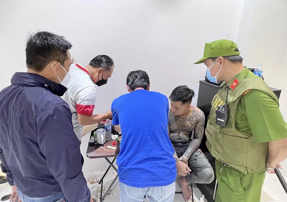 Trước đó, khoảng 1 giờ 40 phút ngày 24-6, Đội Cảnh sát điều tra tội phạm về ma tuý Công an TP Long Xuyên phối hợp với các đơn vị chức năng thuộc Công an tỉnh An Giang tiến hành kiểm tra hành chính phòng 14.07, phòng 19.20 và phòng 20.01 ở một chung cư trên địa bàn TP Long Xuyên. Qua đó phát hiện có 17 đối tượng nam, nữ, độ tuổi từ 16 đến 38 tuổi đang ở trong 3 phòng trên; đồng thời thu giữ 5 bọc nilon chứa tinh thể màu trắng nghi chất ma túy, cùng 19 điện thoại di động các loại, 4 xe môtô, 1 máy tính bảng, hơn 130 triệu đồng tiền mặt, nhiều tang vật khác có liên quan…