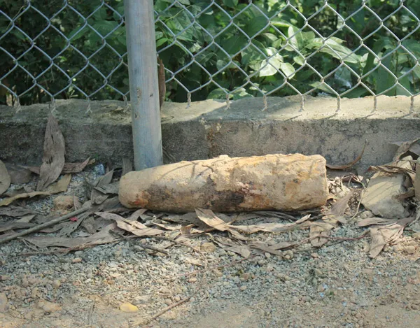 Mìn cối được phát hiện tại vườn nhà ông Nguyễn Liên. Ảnh: Nguyễn Trang