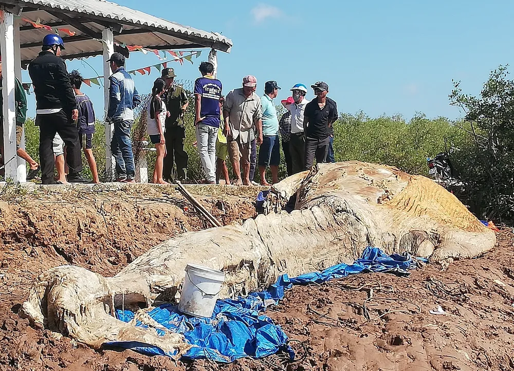 Trước đó, vào trưa cùng ngày, người dân đi biển phát hiện một con cá ông chết trôi dạt từ biển vào bìa rừng đang trong thời kỳ phân hủy. Khi cá chết trôi vào bờ thì phần đầu và một phần đuôi bị mất. Theo ước đoán của người dân, cá ông dài khoảng 12m, nặng trên 10 tấn.