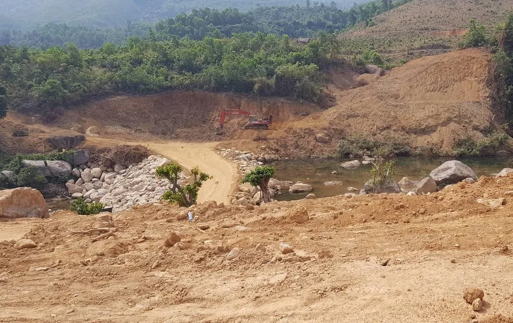 Tại hiện trường, con sông Luông Đông bị chặn dòng để làm một con đường lớn băng ngang cho xe chuyên chở vật liệu đi lại. Phía bên kia bờ sông, một khoảng đất lớn đang được san lấp mặt bằng.
