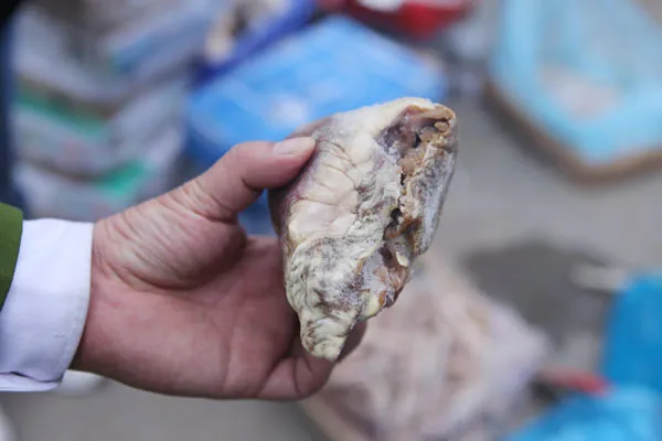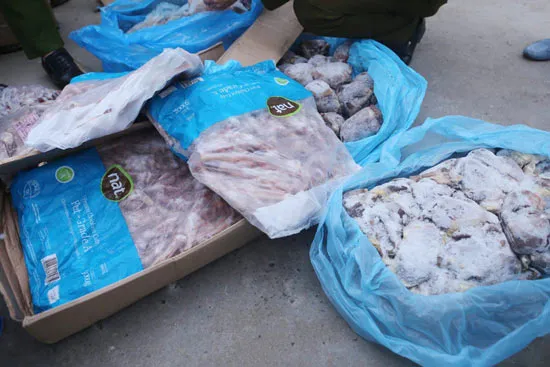 Thiếu tá Ngô Anh Thuấn, Đội 5 Phòng Cảnh sát môi trường PC49 cho biết, qua kiểm tra thực tế, cơ quan chức năng đã xác định lô hàng đông lạnh nói trên đều hết hạn sử dụng. Phần lớn chân gà, tim lợn ghi bao bì nhập khẩu từ Mỹ, Brazil và đang trong quá trình phân hủy, bốc mùi hôi thối.