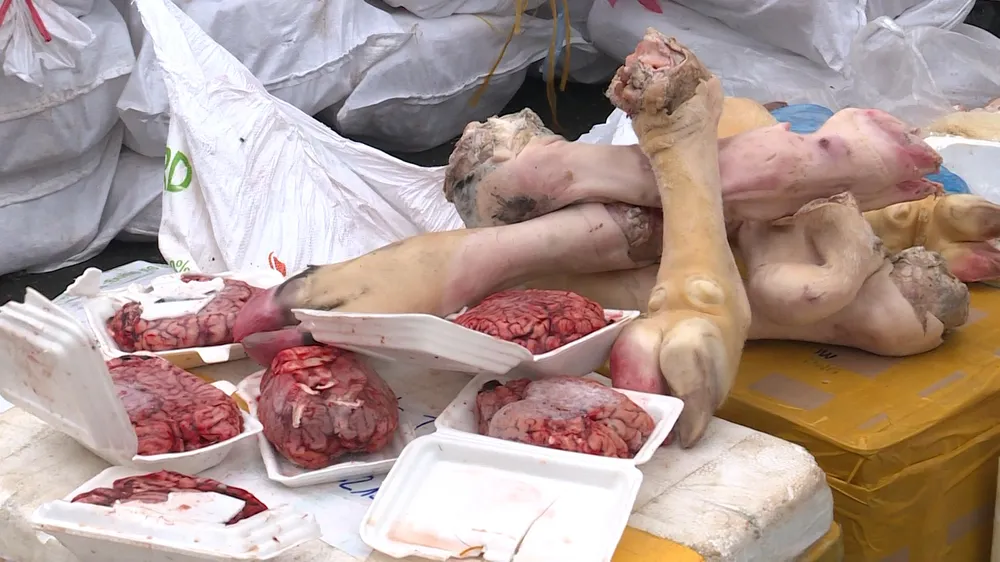 Hơn 3,2 tấn sản phẩm động vật, gồm: nội tạng, chân, óc, mỡ bò... |