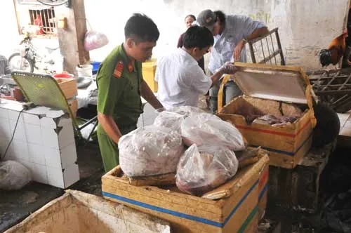 Lực lượng chức năng phát hiện thịt thối tại khu nhà lồng chợ Đồng Xoài