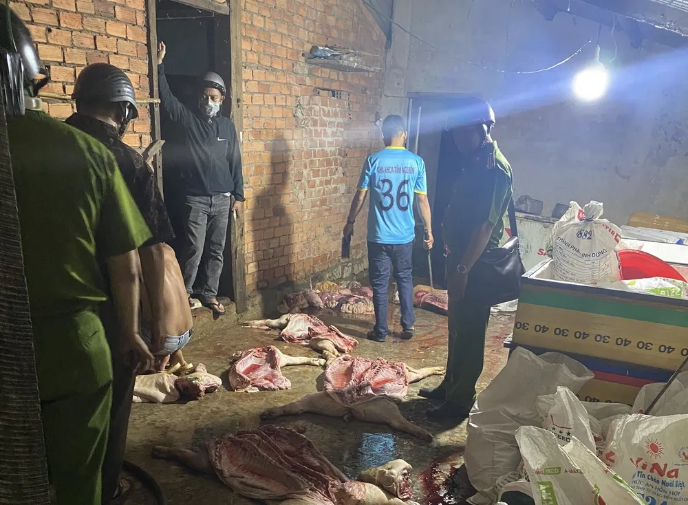 Trước đó, khoảng 20 giờ ngày 9-6, Đội Cảnh sát kinh tế, ma túy và môi trường, Công an huyện Cư Jút phối hợp với ngành chức năng địa phương bắt quả tang 3 đối tượng đều trú tại xã Tâm Thắng (huyện Cư Jút) đang có hành vi mổ heo đã chết bốc mùi hôi thối.