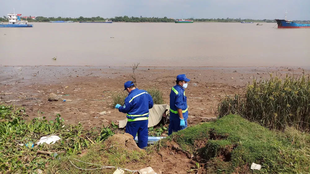 Nhận tin báo, công an có mặt tại hiện trường và kéo thi thể vào bờ, lấy lời khai, khám nghiệm, điều tra làm rõ.