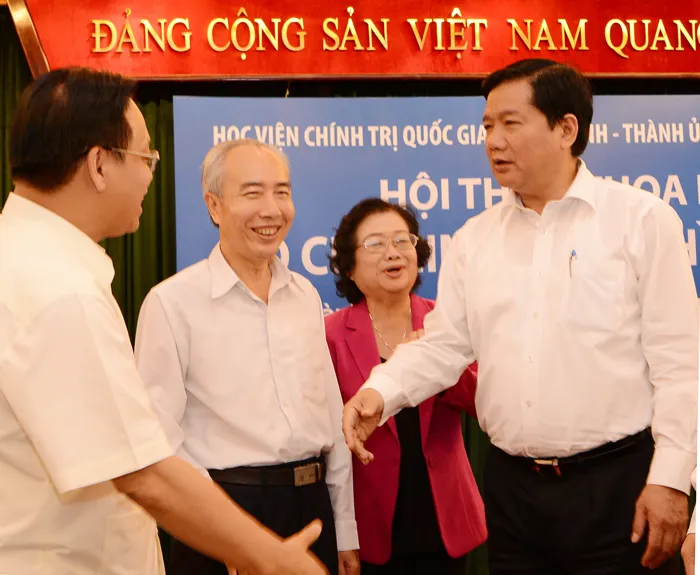 Tham dự hội thảo có các đồng chí: Võ Văn Thưởng, Ủy viên Bộ Chính trị, Bí thư Trung ương Đảng, Trưởng ban Tuyên giáo Trung ương; Đinh La Thăng, Ủy viên Bộ Chính trị, Bí thư Thành ủy TPHCM; nguyên Bí thư Thành ủy Lê Thanh Hải; nguyên Phó Chủ tịch nước Trương Mỹ Hoa; Phó Bí thư Thường trực Thành ủy Tất Thành Cang; Chủ tịch UBND TPHCM Nguyễn Thành Phong; Giám đốc Học viện Chính trị quốc gia Hồ Chí Minh - GS.TS Nguyễn Xuân Thắng; đại diện lãnh đạo các bộ ban ngành Trung ương, các đồng chí trong Ban Thường vụ Thành ủy cùng đông đảo các nhà nghiên cứu, nhà khoa học, các nhà lãnh đạo, quản lý.