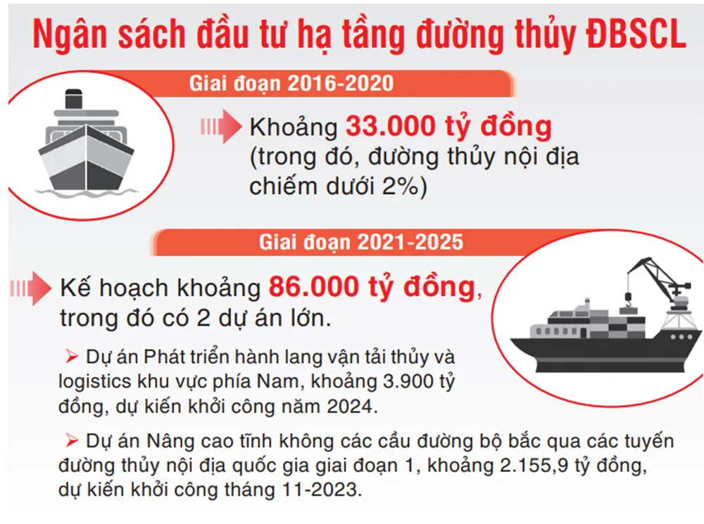 Với tổng vốn đầu tư 3.900 tỷ đồng, Dự án Phát triển các hành lang đường thủy và logistics khu vực phía Nam là dự án hạ tầng đường thủy lớn nhất được triển khai tại khu vực, nhằm nâng cấp 2 tuyến hành lang đường thủy trọng yếu. Trong đó, hành lang Đông - Tây có chiều dài khoảng 197km, chạy qua các sông Hậu, Trà Ôn, Mang Thít, Cổ Chiên, kênh Chợ Lách, sông Tiền, rạch Kỳ Hôn, kênh Chợ Gạo, rạch Lá, sông Vàm Cỏ, kênh Nước Mặn, sông Cần Giuộc, sông Soài Rạp. Hành lang Bắc - Nam có chiều dài khoảng 82km, chạy qua các sông Đồng Nai, Nhà Bè, Lòng Tàu, Đồng Tranh, Tắc Cua, Gò Gia, Thị Vải.
