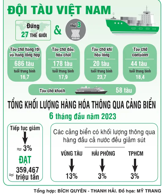 Đó là lý do dù khối lượng hàng hóa thông qua cảng biển Việt vẫn tiếp tục đà tăng, nhưng thị phần vận tải do đội tàu biển Việt Nam đảm nhận lại ngày càng tụt. Theo thống kê, thị trường vận tải hàng xuất nhập khẩu do đội tàu biển Việt Nam đảm nhận đang tiếp tục giảm dần, từ 11% năm 2015 hiện còn khoảng 5%. Chính vì năng lực hạn chế này, đội tàu biển Việt Nam đã không thể nắm bắt được thời cơ từ các hiệp định thương mại tự do mà Việt Nam ký kết với nhiều quốc gia...