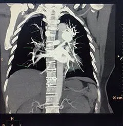 Qua các kết quả cận lâm sàng cấp cứu của bệnh nhân cho thấy huyết khối lấp hoàn toàn động mạch phổi phải, động mạch phổi trái ở đoạn gốc và các phân nhánh. Siêu âm tĩnh mạch chi dưới thấy huyết khối lấp hoàn toàn tĩnh mạch đùi nông, tĩnh mạch khoeo, chày trước và chày sau chân phải.